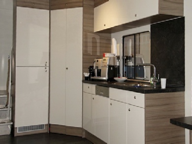 Im Bereich des Schwanenhalses befindet sich eine Küchenzeile.